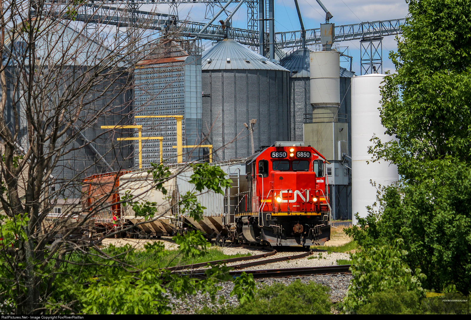 | CN L533, with GTW 5850 doing the honors, pauses at the Country Visions Coop near Chilton to spot two hoppers before continuing on to Chilton and finishing the day. |