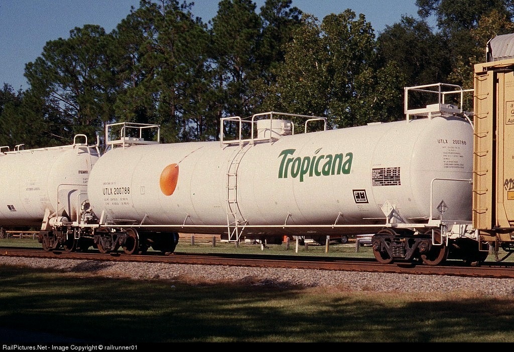 Tropicana well-known for its fleet of reefers also has a fleet of tankers but under UTLX reporting marks. Here is # 200788.