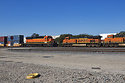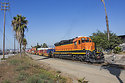| A PHL BNSF Dock Job brings a train of containers bound for export up to Long Beach Jct. After waiting on several BNSF, PHL and UP moves to clear, they'll yard at a couple locations in the Port of Long Beach. PRLX 1320 is one of four ex-BNSF PR30Cs that are in Wilmington, but the only one that's been placed in service. |