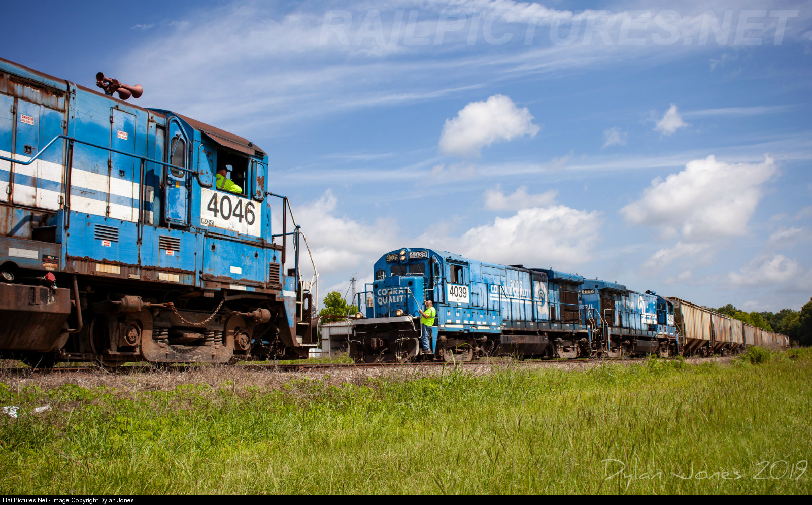 Today was a rare day on the good ole Meridian Southern Railway. I got a call from the manager of the railroad stating that they would be having a meet at Quitman, MS today with a Southbound unit grain train and a northbound manifest. Spent all morning and part of the afternoon chasing the trains. The best part of the day was getting a shot of all 4 of MDS' active Conrail GE B23-7's meeting in town.