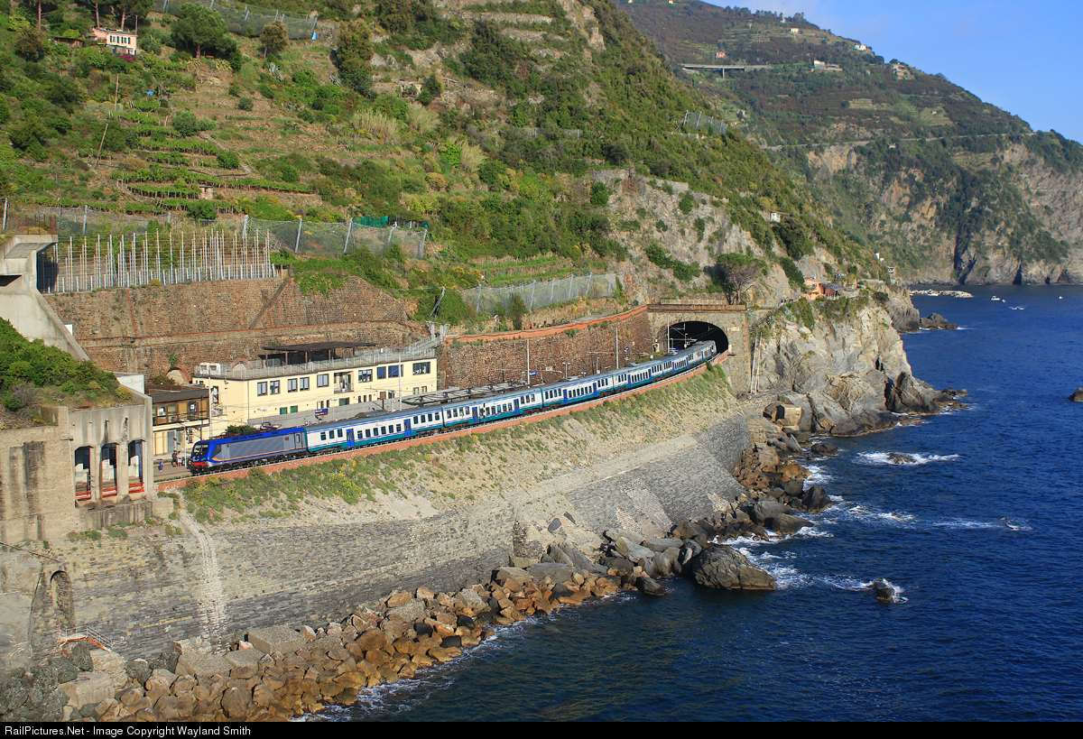 FS push pull service calls at the fantastically busy Cinque Terre station of Manarola.