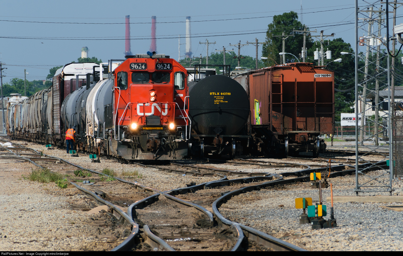 A former Illinois Central GP38-2, now wearing CN paint, works the small yard on the industrial branch line on Presidents Island in Memphis. Numerous agricultural, chemical, and other industries are located on the line with access to rail, roads, and the Mississippi River.