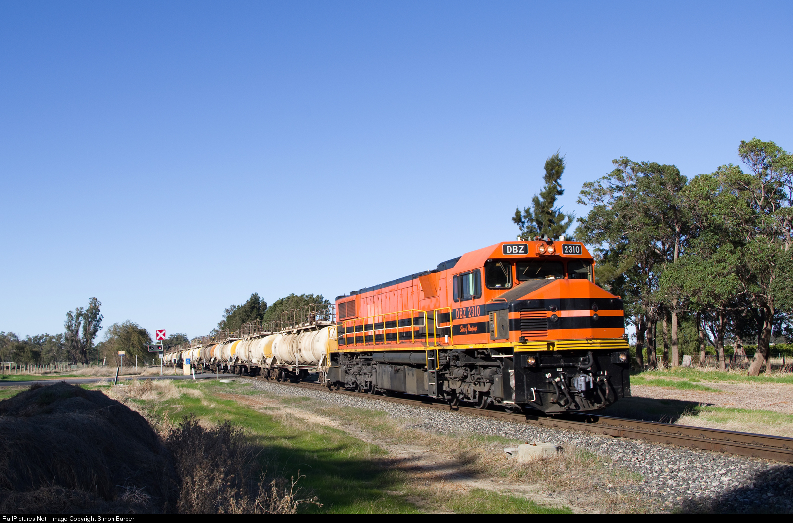 | DBZ2310 brings a loaded train of caustic soda northbound past the loop at Warawarrup, bound for the Alcoa refinery at Wagerup. |