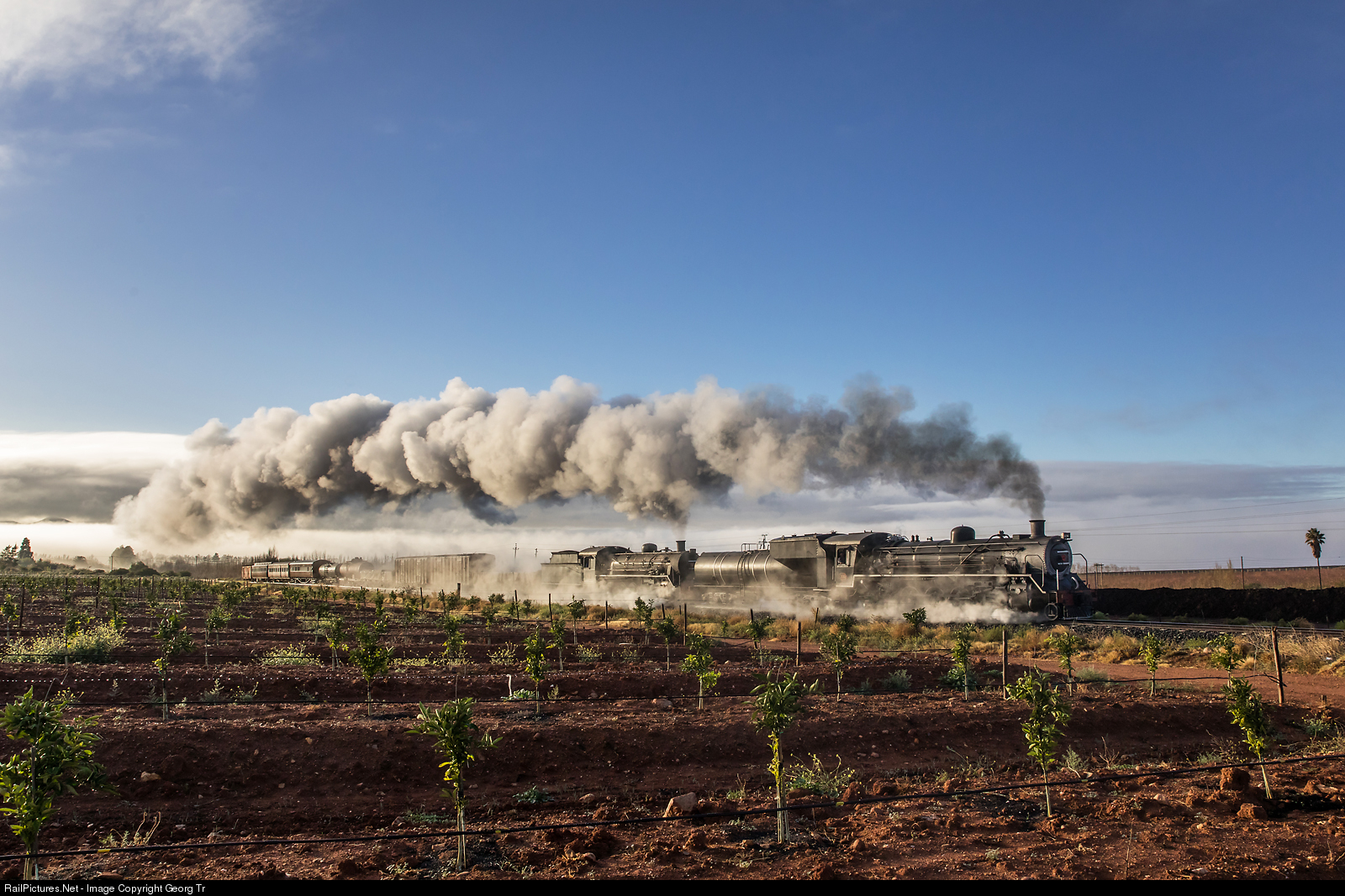 4-8-2 19D # 3322 and 19B # 1412 of the South African Railways (SAR), now owned and operated by the Ceres Rail Company, are pulling a mixed freight/passenger train on the former New Cape Central Railway line between Robertson and Vink. A FarRail Tours charter of Bernd Seiler.
