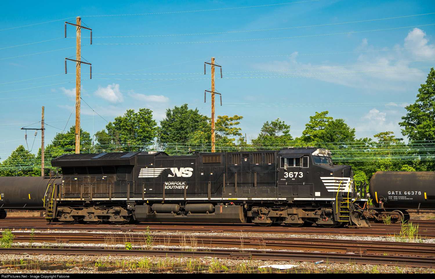 NS 3673 sitting in Stiles Street Yard. This engine is currently being used to drill a local refinery and put together outbound train 67Z. This yard used to service the massive 100 acre GM Linden Assembly Plant. Opened in 1937, it produced cars, trucks, SUV's, and was even used to make fighter jets during WW2. Production lasted until 2005 when the last vehicle left the line. Three years later the property was sold to a developer and the plant was demolished. Nothing remains of it today. Since then the yard remained empty, only being used to store NJ Transit equipment a few times. Only within the last year has Conrail started using it again as an overflow when Port Reading Yard gets too crowded. Also NS now parks their drill engine there as well. The catenary poles in the back are for Amtrak's Northeast Corridor.