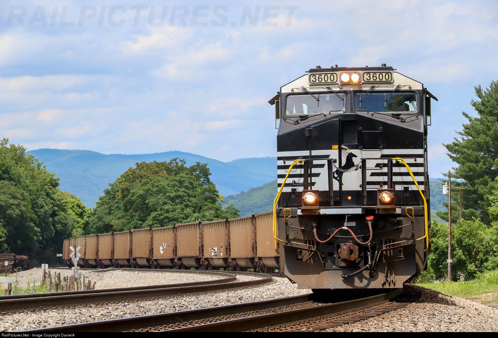 | The first ET44AC delivered to Norfolk Southern, #3600, is seen here leading NS 757 westbound in Shawsville, Va. |
