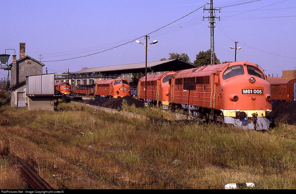 | 4 of the popular Nohab/GM locos are seen at Tapolca depot in 1991. They are 61005, 61001, 61018 and 61008.