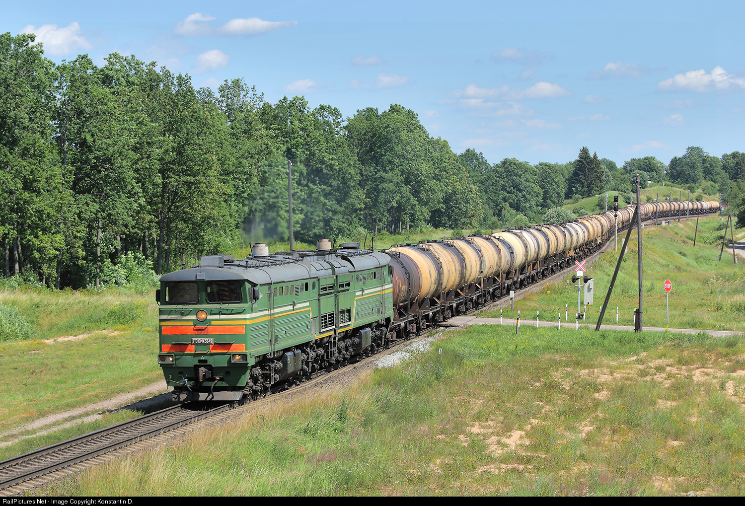 RailPictures.Net Photo: 3649 Belarus railways (BcH) 2TE10MK at Andzani, Latvia by Konstantin D.