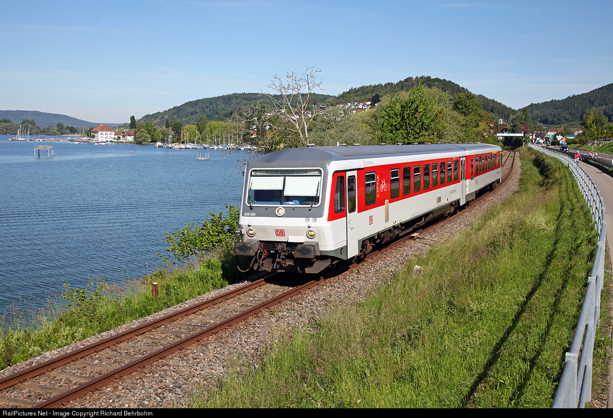 | VT 628 540 in the livery painting of the "Sylt Shuttle plus" (Sylt is an island in the north of Germany) is en route along the lake Constance in southern Germany. |
