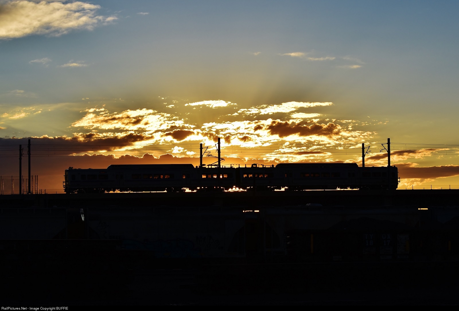 A dynamic sunrise catches RTD 4023 as it heads to Arvada in the early dawn.
