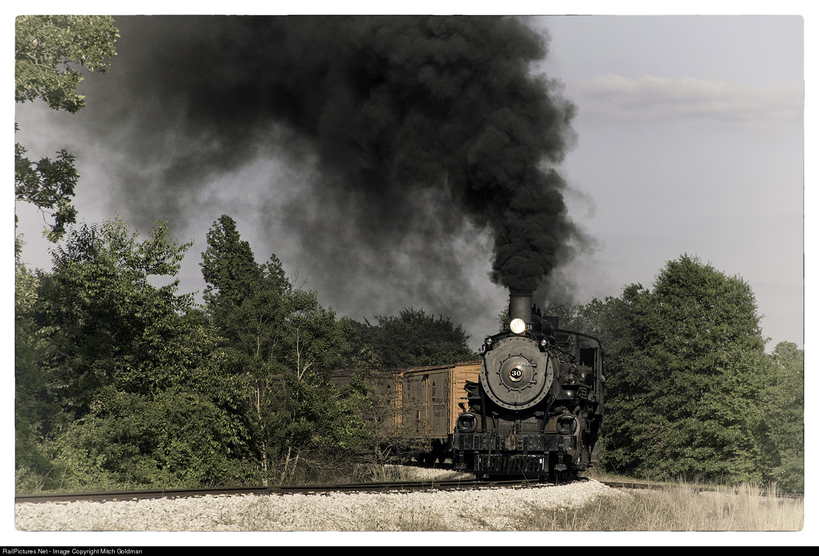 The Tremont & Gulf Railway begain life in 1902, when it laid rails from a Tremont Lumber Company railhead 9 miles from the town of Tremont (roughly 26 miles west of Monroe, LA) to Winnfield, Louisiana, some 40 miles to the south. At its peek, the line operated 114 miles with connections to the Missouri Pacific Illinois Central, the O N & W, as well as the Louisiana & Arkansas and Rock Island in Winnfield. Despite these advantages, the railroad lost money throughout its existence and was later sold in 1958 to the Illinois Central which abandoned the line later on March 1, 1986. No. 30 was sold to the Magma Arizona Railroad where it operated as their No. 7, until sold in 1974 to the "new" Texas State Railroad.