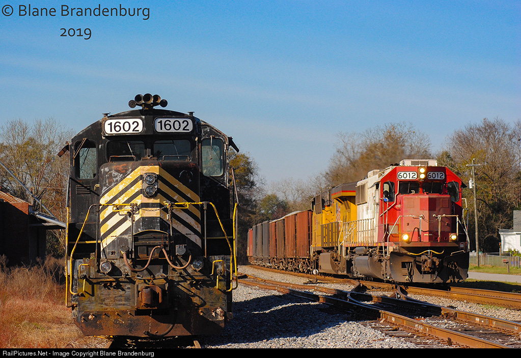 | CEFX SD60 #6012 leads NS train 373 through the small town of Midville passing the Georgia Southern power in Midville, Georgia as they head east to Savannah |