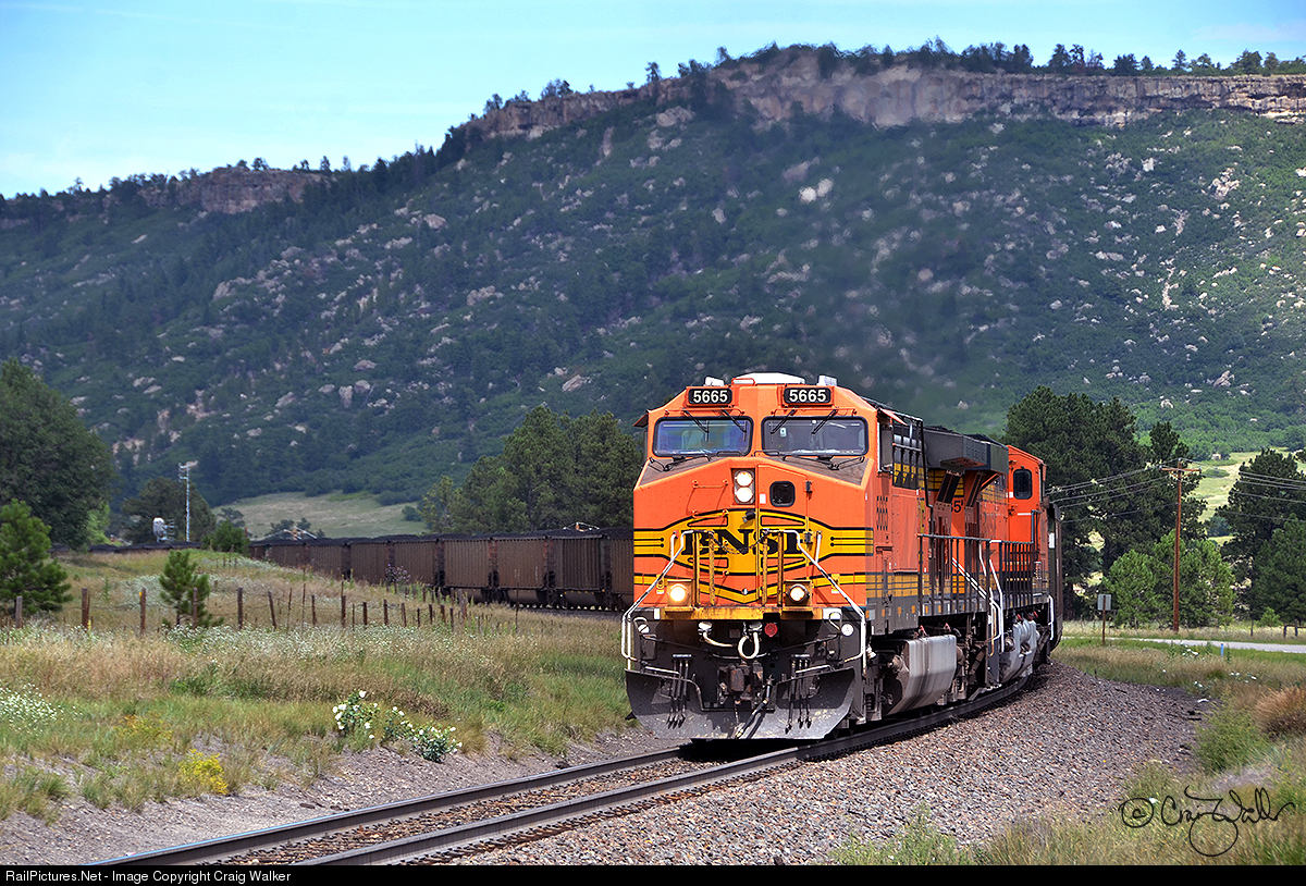 Heading south on the Joint Line on August 15, 2017, is BNSF Railway coal train C-SCMCRD0-17. This train, with AC4400CW 5665 and ES44AC 6158 up front and AC4400CW 5678 and SD70ACe 8584 on the rear, is heading from the Spring Creek Mine in Decker, Montana to the Coronado Generating Station in Coronado, Arizona.