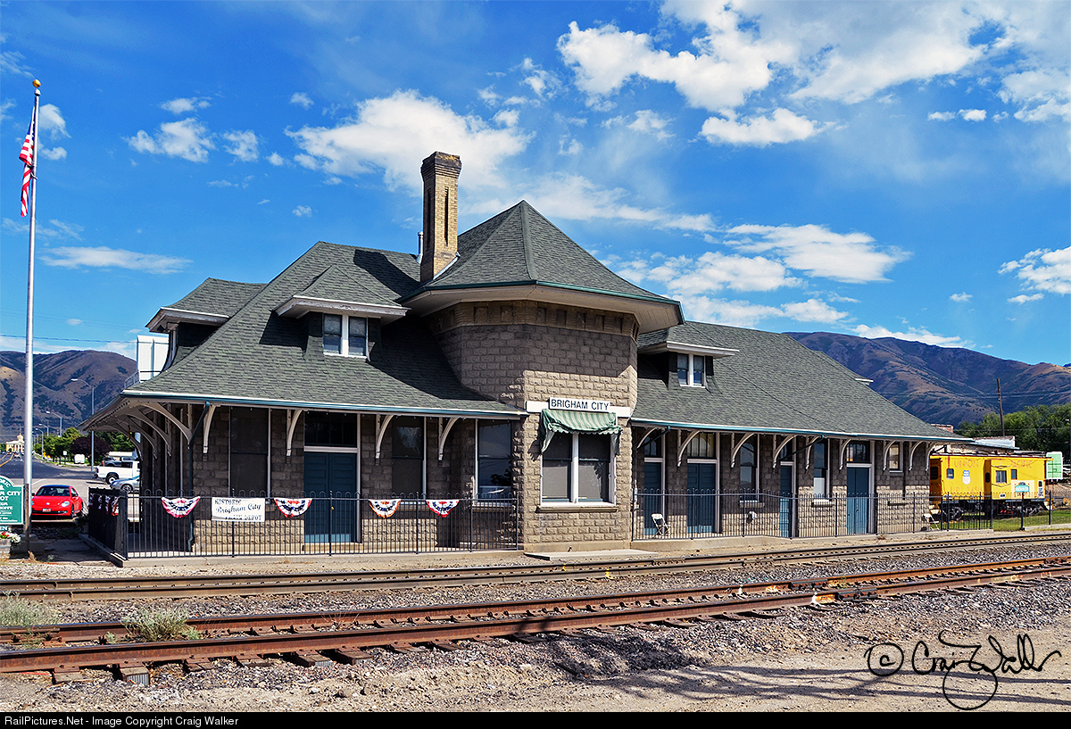 Built in 1906 by the Oregon Short Line Railroad, this station in Brigham City, Utah, was built in the Craftsman Style of architecture. The OSL, a subsidiary of the Union Pacific. In 1938, UP began consolidating operations and leased for operation a number of its subsidiaries, including the OSL. The railroad operated under this lease until December 30, 1987, when the OSL was fully merged into the Union Pacific Railroad. Today, the Brigham City depot houses a museum of railroad and historical artifacts, and serves the area of northern Utah as an education hub for schools and patrons.