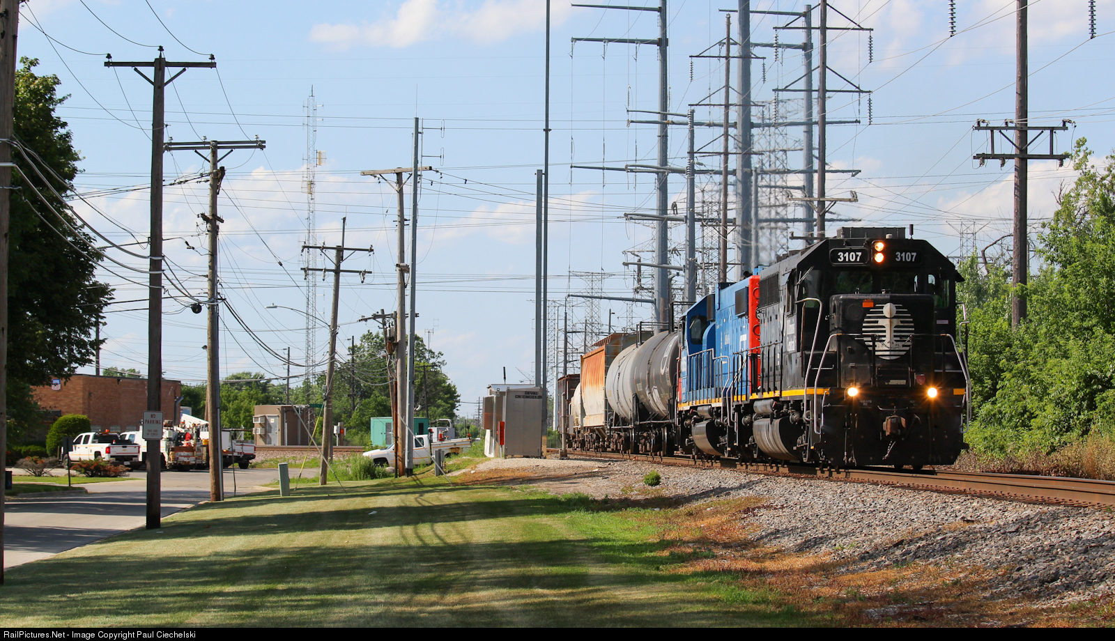 | Despite this previously being the Wisconsin Central's trackage, CN's L501 is no stranger to Geeps of IC and GTW heritage. However, this is the first time in years that an IC painted locomotive has ended up on this local. Paired with the GTW 5856, IC 3107 brings the L501 over Deval just before the beginning of rush hour. |