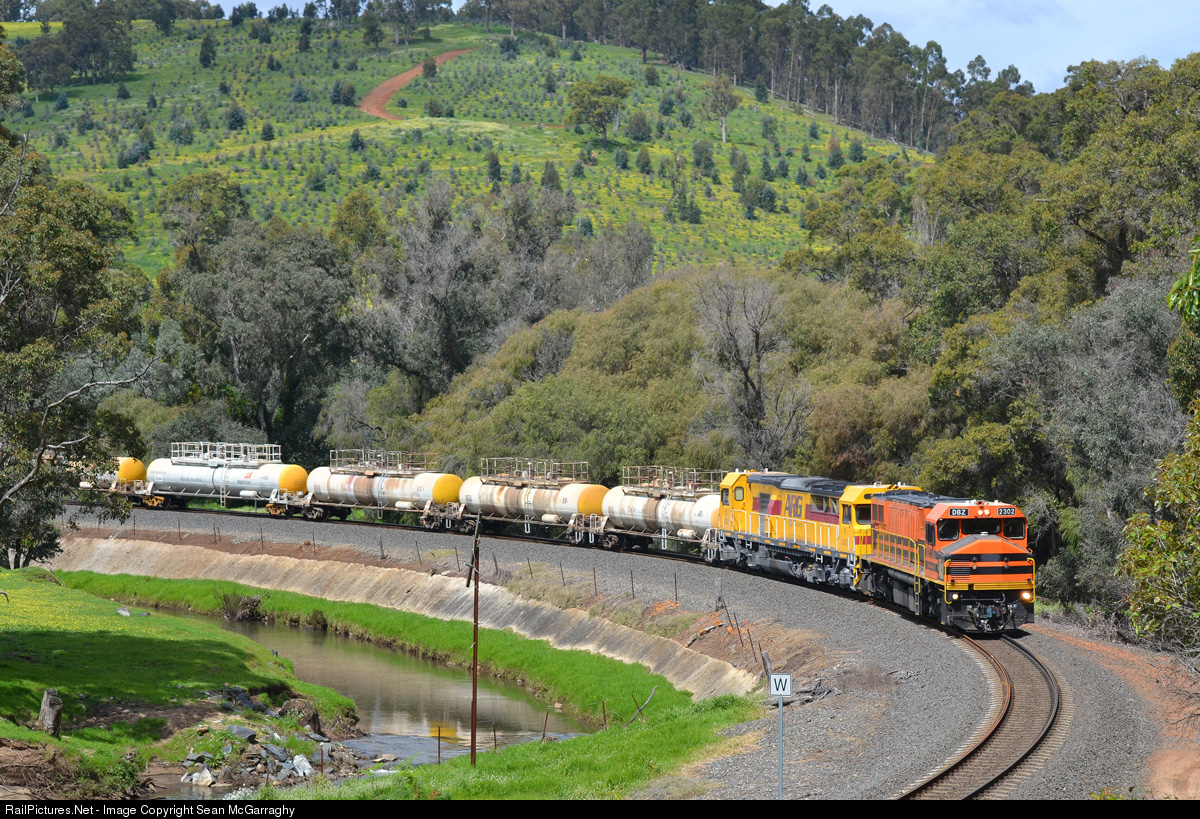 DBZ2302 & S3302 round the Beela curves with 1852 empty caustic soda tanks from Hamilton to Bunbury Inner Harbour.