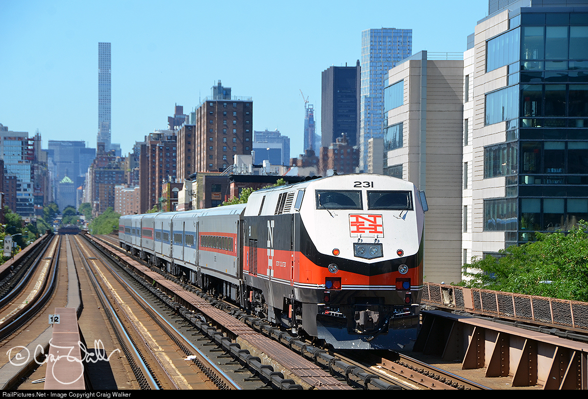 Metro-North commuter train 746, from Croton-Harmon NY to New York City's Grand Central Terminal, departs the busy (and that is a huge understatement!) Harlem-125th Street station on July 19, 2018. MNCW cab car 6223 (the "Mark Twain") leads this train as it ticks off the last few miles to Grand Central, with MNCW P32AC-DM 231, one of four of these dual-mode locomotives (both third rail electrical pickup for use in NYC's tunnels, and diesel power) painted in the attractive New Haven McGinnis paint scheme. All four mainlines drop down into the tunnels for below-grade running into the heart of Manahattan just ahead.