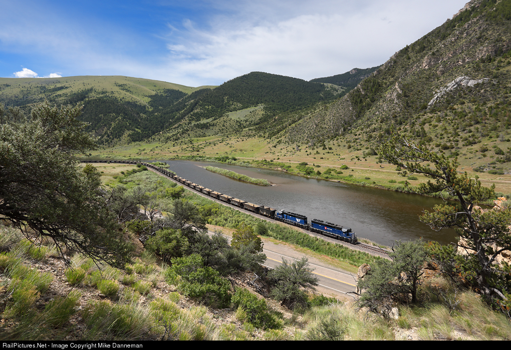 Traversing the scenic Jefferson River Canyon between Sappington and Whitehall, Montana, is a westbound Montana Rail Link ballast train led by SD45 No. 346 on June 26, 2019. The empty train is heading for the pit on the Spire Rock Industrial Lead west of Pipestone. Visible on the other side of the river is the empty grade of Milwaukee Road’s electrified Pacific Extension main line that once paralleled the former Northern Pacific main line through this canyon toward Butte.