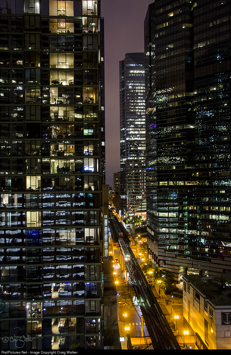 A Chicago Transit Authority Green Line train departs the Clinton station as it makes its way east down the elevated trackage over Lake Street toward downtown Chicago's "Loop" on September 30, 2018. The Green Line is the CTA's only completely elevated route in their entire system. It utilizes the CTA's oldest segments (dating back to 1892), extending just over 20 miles with 30 stops between Forest Park and Oak Park (Harlem/Lake), through Chicago's West Side to the Loop, and then to the South Side and West Englewood (Ashland/63rd) and Woodlawn (Cottage Grove/63rd).