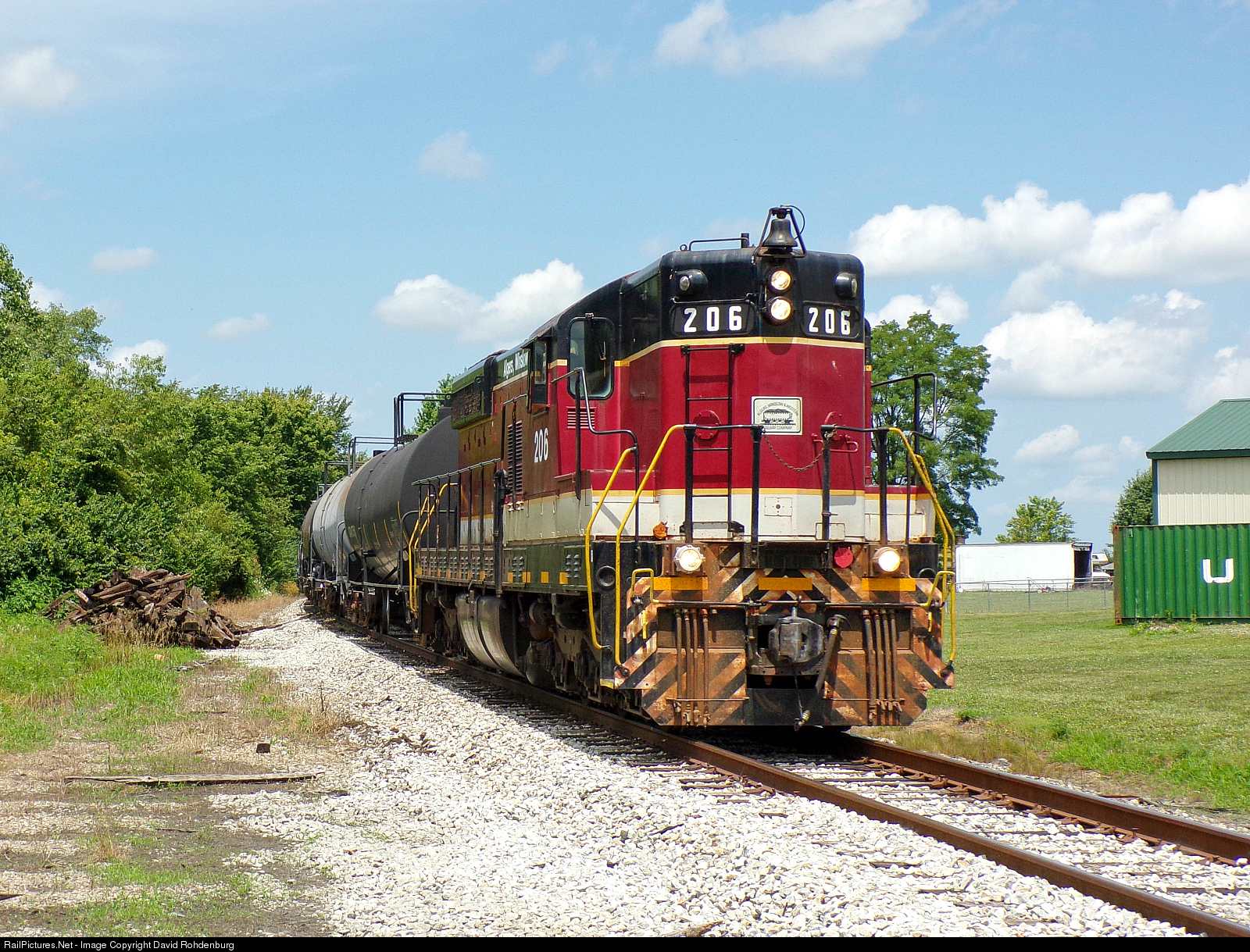 | IERR SD9 206 is in command of a short 6 car train as it is about to cross the state line from Indiana into Ohio at State Line Road in the small community of Peoria, Indiana. |