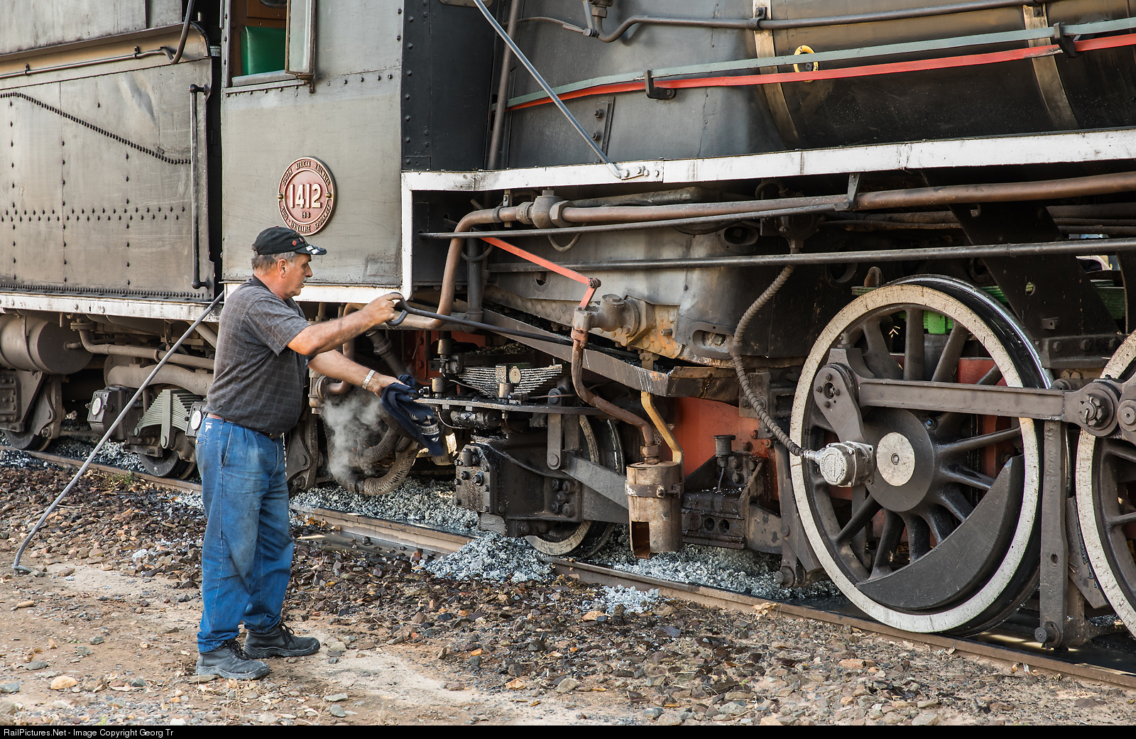 Cleaning the grate of the 19B # 1412 of the Ceres Rail Company in Ashton.