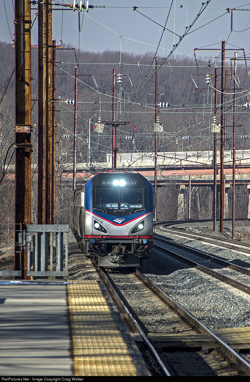Amtrak train 91, the southbound "Silver Star," is 196 miles into its 1389 mile journey from New York, New York to Miami, Florida as it speeds through the BWI Thurgood Marshall Airport Station (at which this train does not stop) near Baltimore, Maryland. This train is powered by one of Amtrak's ACS-64, number 630. (February 4, 2019)