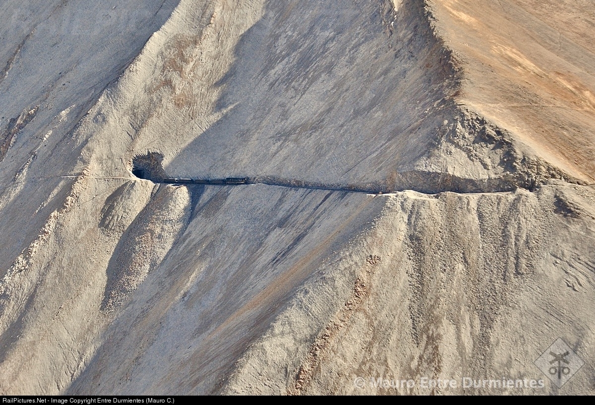 | A memory of the disappeared railway that climbed to the CODELCO Potrerillos mining zone, FERRONOR copper train going through the most difficult and spectacular section, between Montandon and Potrerillos. The destruction and disappearance of this railroad by heavy floods and alluvium in March of 2015, it has prevented us from continuing to enjoy scenarios like this. |