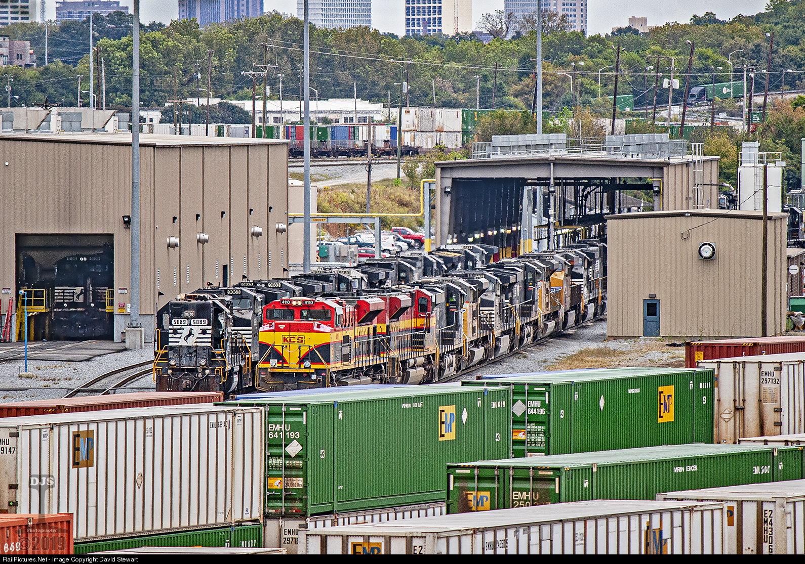 | Norfolk Southern's Atlanta diesel shop at Inman Yard as seen looking from the north finds the typical array of power for the time. Time was getting short for such units as the 5089, a high hood GP38-2. |
