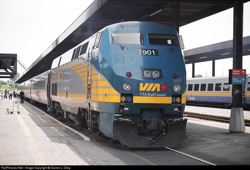 | VIA #45 headed southbound for Kingston, ON pauses at the Ottawa Union Station on a humid July afternoon. |