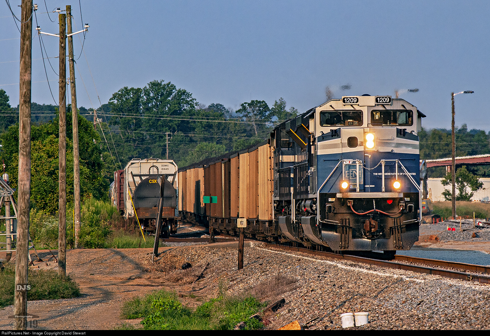 | EMDX SD70ACe P4 demonstrators bring CSX coal train N290 across the Stilesboro Branch in the last rays of light on August 23, 2013 as train rolls out the few remaining miles to Georgia Power's Plant Bowen near Euharlee, Georgia. |