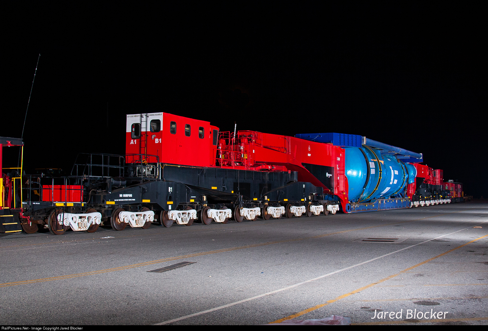 | The last Schnabel car load for Georgia Power's nuclear Plant Vogtle near Waynesboro, Ga. is ready to go at Ocean Terminal on a cool November night. This car was so long I almost didn't have enough lights! |