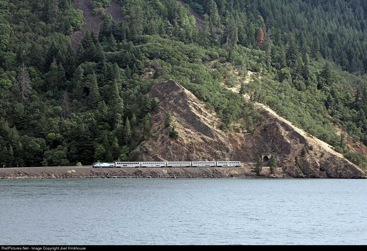 | The Portland Segment of the Empire Builder rolls along the mighty Columbia ... it's late, but not VERY late ... a win! |