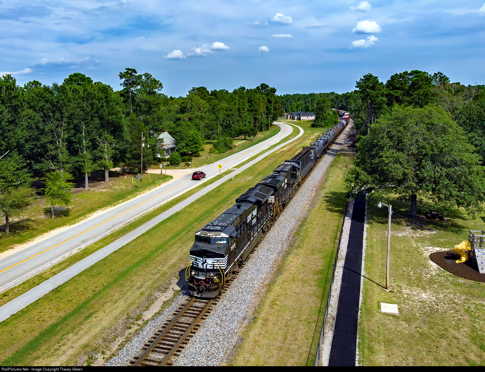 Local Aerial. The local P75 heads south on the Southern's R Line past the neat little town of Summit, SC, moving fairly slow and having some issues with its PTC equipment. P75 is heading to Monetta, SC where it will do work before returning to Andrews Yard in Columbia, SC.