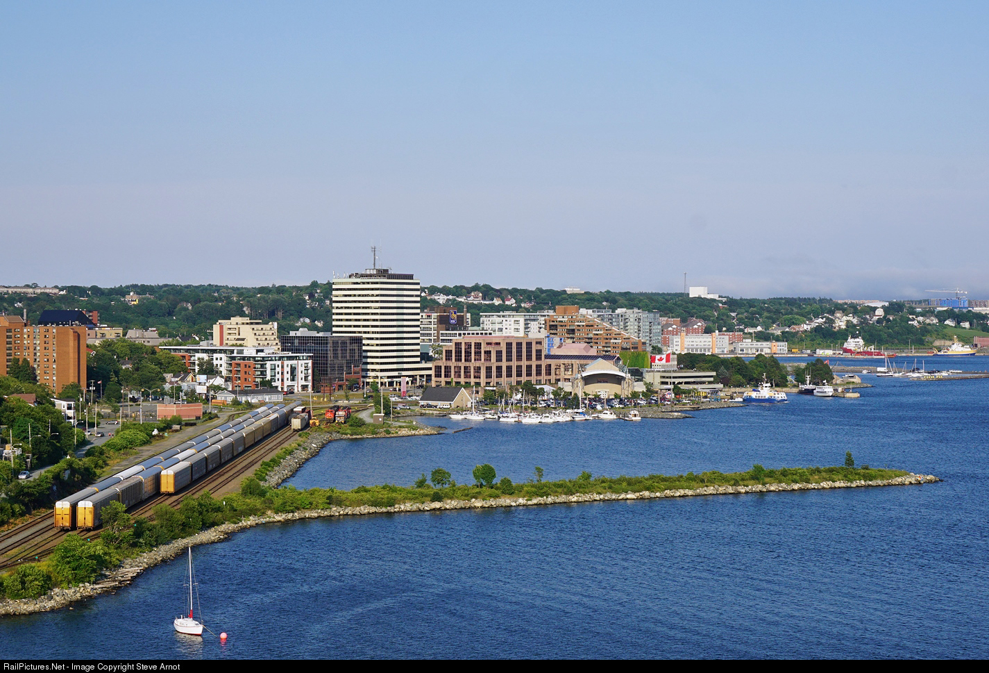 The view of CN's Dartmouth Yard taken from the east side of the Angus L. Macdonald Bridge.