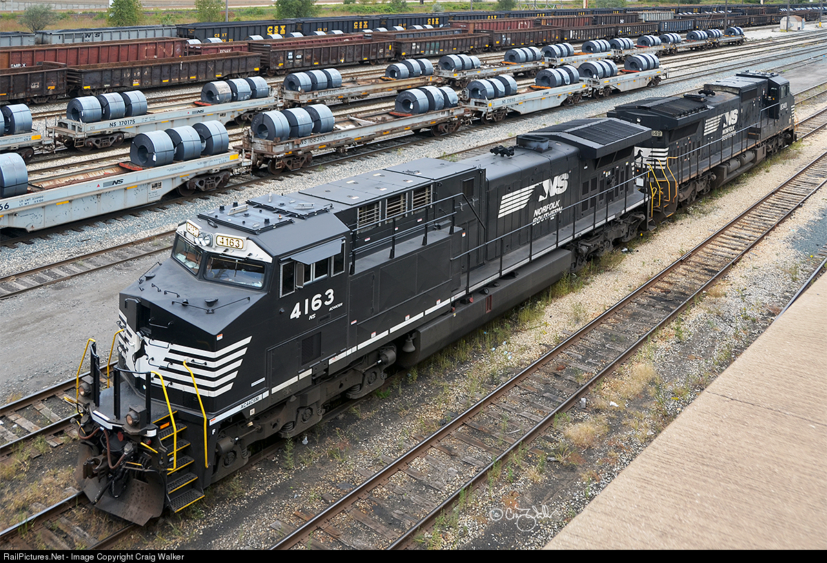 Norfolk Southern AC44C6M 4163 was built from NS Dash 9-40CW 8961. This engine was rebuilt and converted to AC power at General Electric's Fort Worth, Texas, facility. It was placed in service on May 6, 2018, and photographed in East Chicago, Indiana, on September 29, 2018. The engine is coupled to NS Dash 8-40CW 8349, the former Conrail 6109.