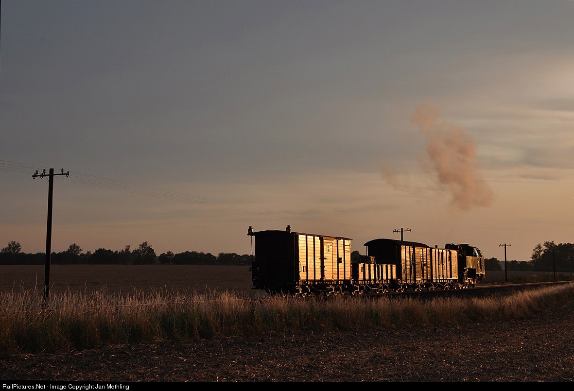 Molli's loco 99 323 with the evening-freigh-train on the way to Kühlungsborn at sunset