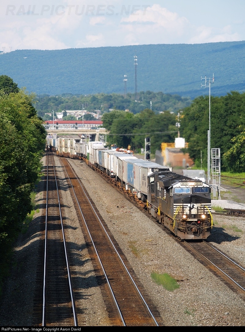 In a move rarely seen, NS 21M crosses over from track 2 to track 1 at CP-Altoona as it heads westbound up the East Slope of the NS Pittsburgh Line. Due to the derailment of NS 35A at Horseshoe Curve ahead, the dispatcher has to run all traffic on track 1 as tracks 2 and 3 are blocked.