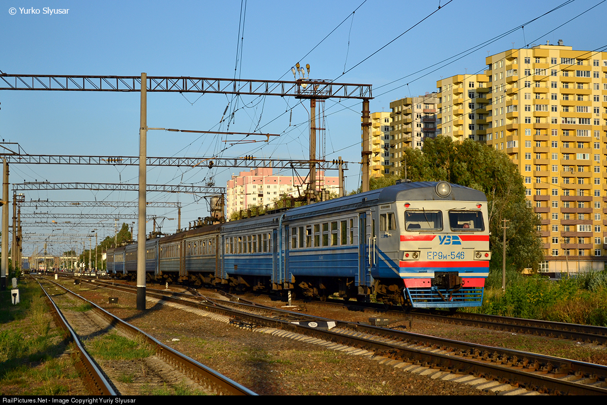 RailPictures.Net Photo: ER9M-546 Ukrzaliznytsya (Ukrainian Railways) ER9M at Kyiv region, Ukraine by Yuriy Slyusar