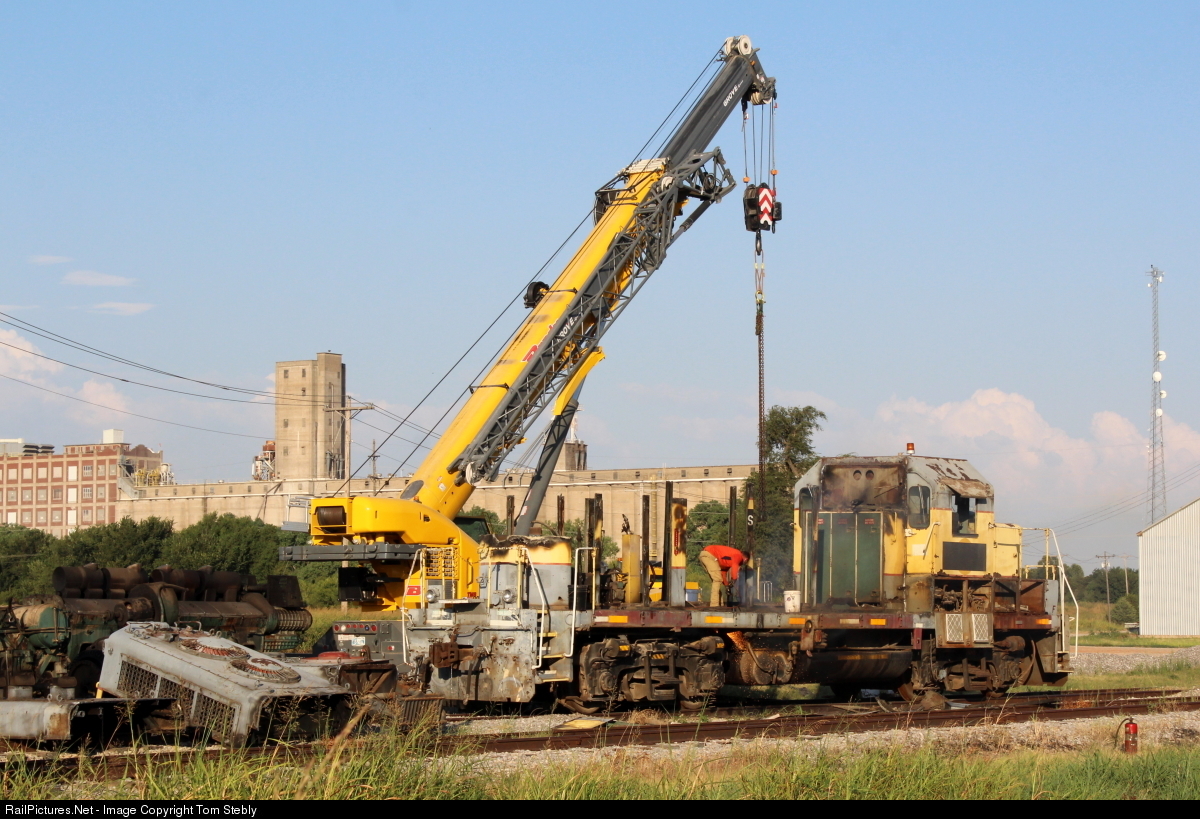 SSRX 756, a former US Sugar GP7, is salvaged at the Norag frac sand facility just North of the BNSF yard in Enid. Originally built as ACL 168 in 1951, the locomotive has spent several years at the Norag facility and has been parked since 2017.