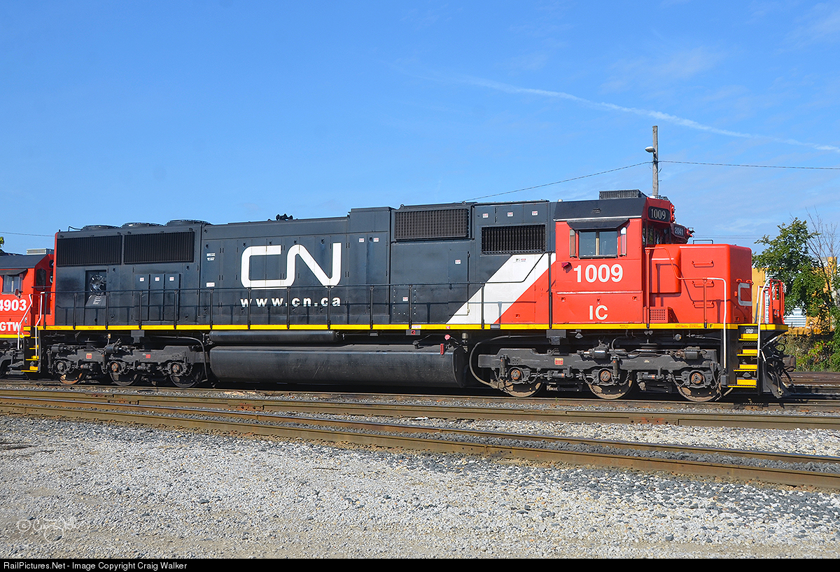 Built by EMD in October 1995, Illinois Central SD70 1009 was delivered in the IC's black "Death Star" paint scheme. When Canadian National Railway purchased the IC in 1998, the roster began receiving CN colors as they were deemed in need of repainting. They continue to retain their IC reporting marks, however. IC 1009 was found in CN's Woodcrest Shops in Homewood, Illinois, on September 30, 2018. Woodcrest is a former IC facility, so 1009 was essentially still on "home rails." Photographed on railroad property with permission and full Personal Protective Equipment (PPE).