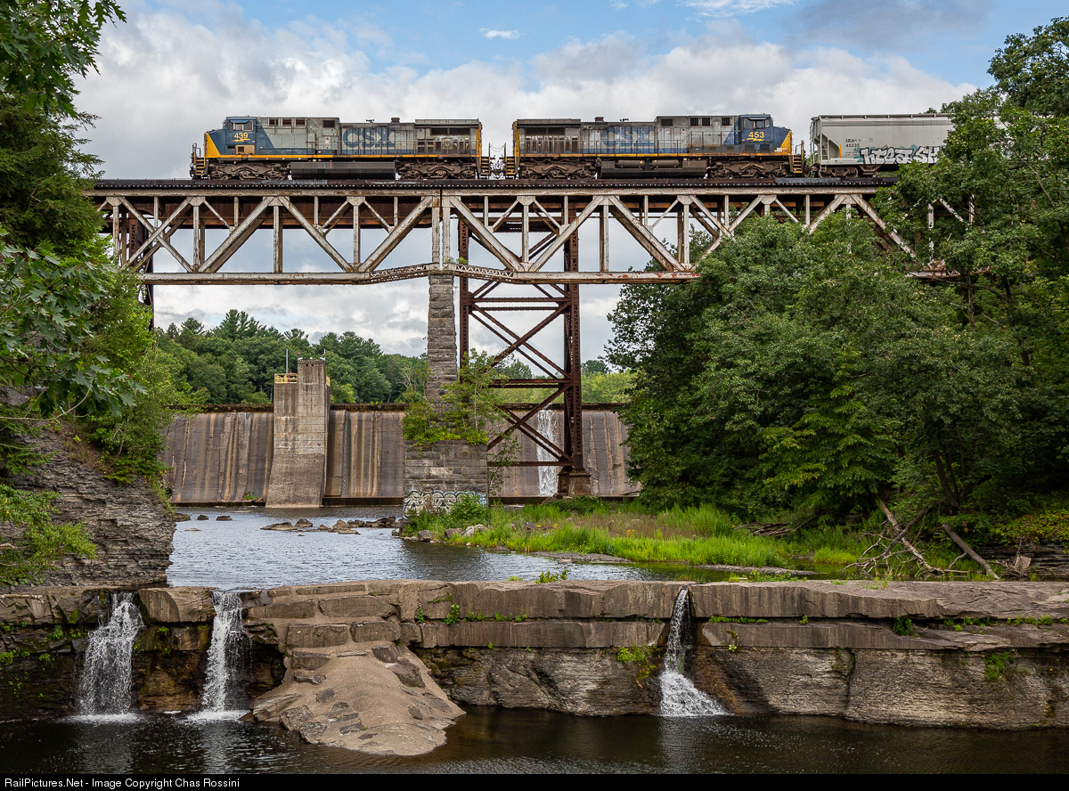 The odd-numbered manifest train Q621 rumbles over French's Hollow Falls on its way towards Selkirk Yard.