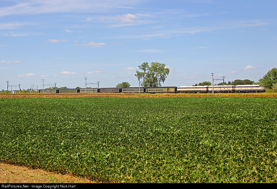 BN 1, BN 2 and BN 3, the A-B-A set of Burlington Northern Executive wagons, lead the coach train on this beautiful afternoon.