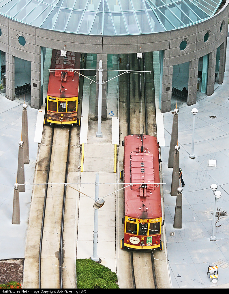 | Two TECO streetcars meet at Greco Plaza, the one on the right is actually disabled, crews had just moved it off of a road crossing after blocking traffic for 20 minutes. Rides are free! |