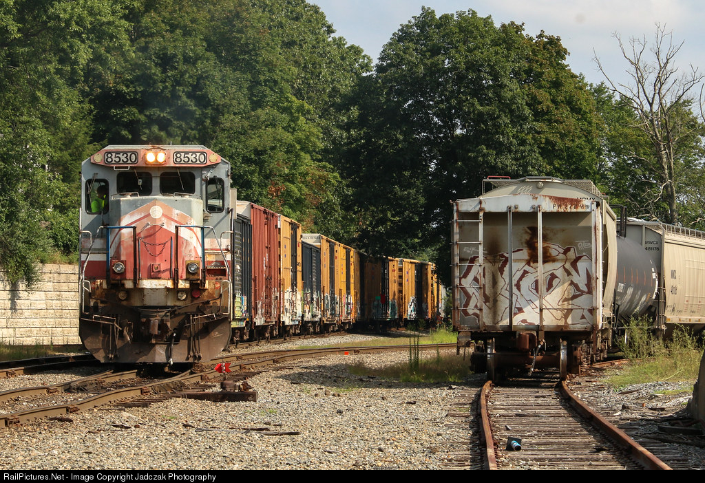 | OHCR 8530 and CSOR 3399 are in charge of today's NR-4, looking like a Connecticut Southern scene from the 2000's. The 8530 was recently returned to CSO rails from Ohio Central, and went to P&W's Worcester Shops for repairs. The 3399 has been operating on P&W for a while now, and the two happened to be paired together for today's NR-4. The 8530 was later dropped in Willimantic for transport back to CSO. |