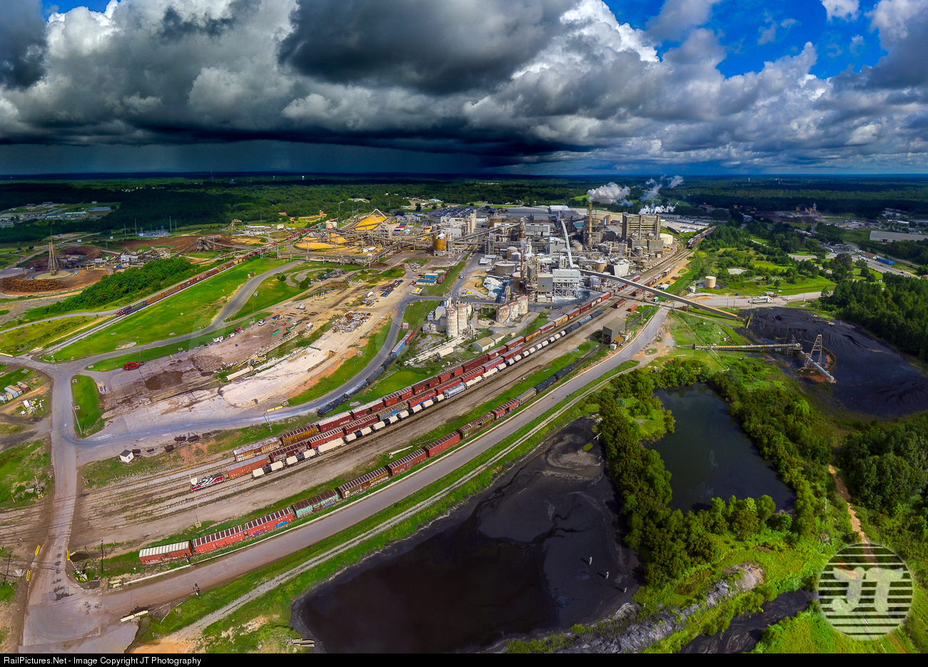 A switcher kicks cars around at the massive International Paper Mill in Cantonment, Florida while a strong line of morning thunderstorms begin to move into the area. This mill is served by both CSXT and AGR - originally both the Frisco and the L&N competed for the traffic as it was built in between both lines.