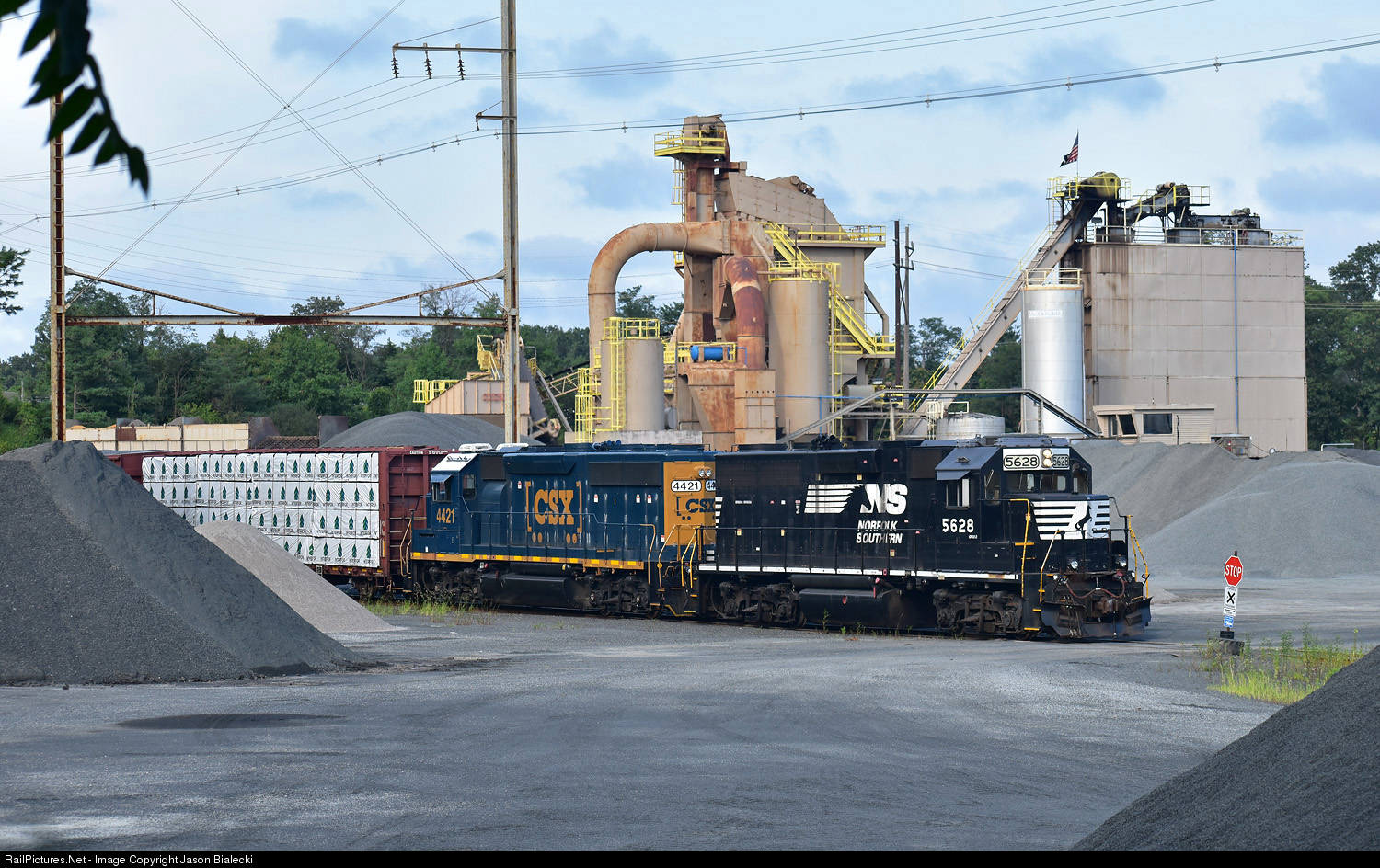 The weekly Browns Yard local to Lakewood is passing through the Stavola Asphalt/Recycle Plant in Tinton Falls, NJ.