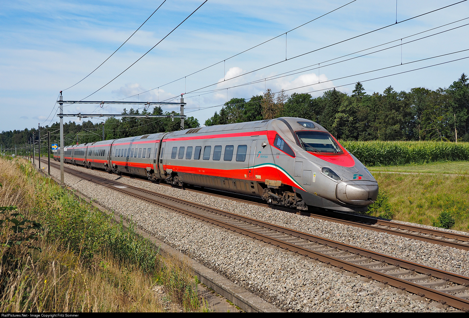 | 16 August 2019: An ETR 610 from Trenitalia as EC 50 Milano Centrale- Basel SBB passes just in time at 10:50 a.m. the photographer, his speed is 200 kmh. Recorded near Heinrichswil.