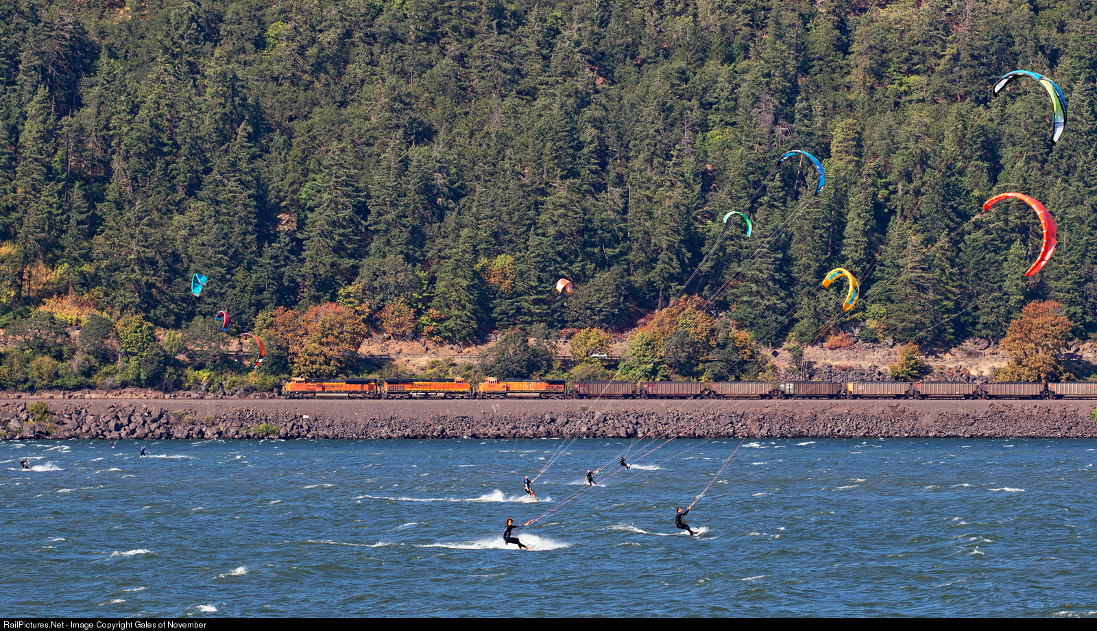 With Hood River, OR hosting its annual Paddle Fest, the Columbia River was filled with daredevils catching some air on a gorgeous day in the gorge. While i'm standing in Oregon, the coal train skirting the Columbia River Gorge is actually in Washington! An amazing day to be out on the water.
