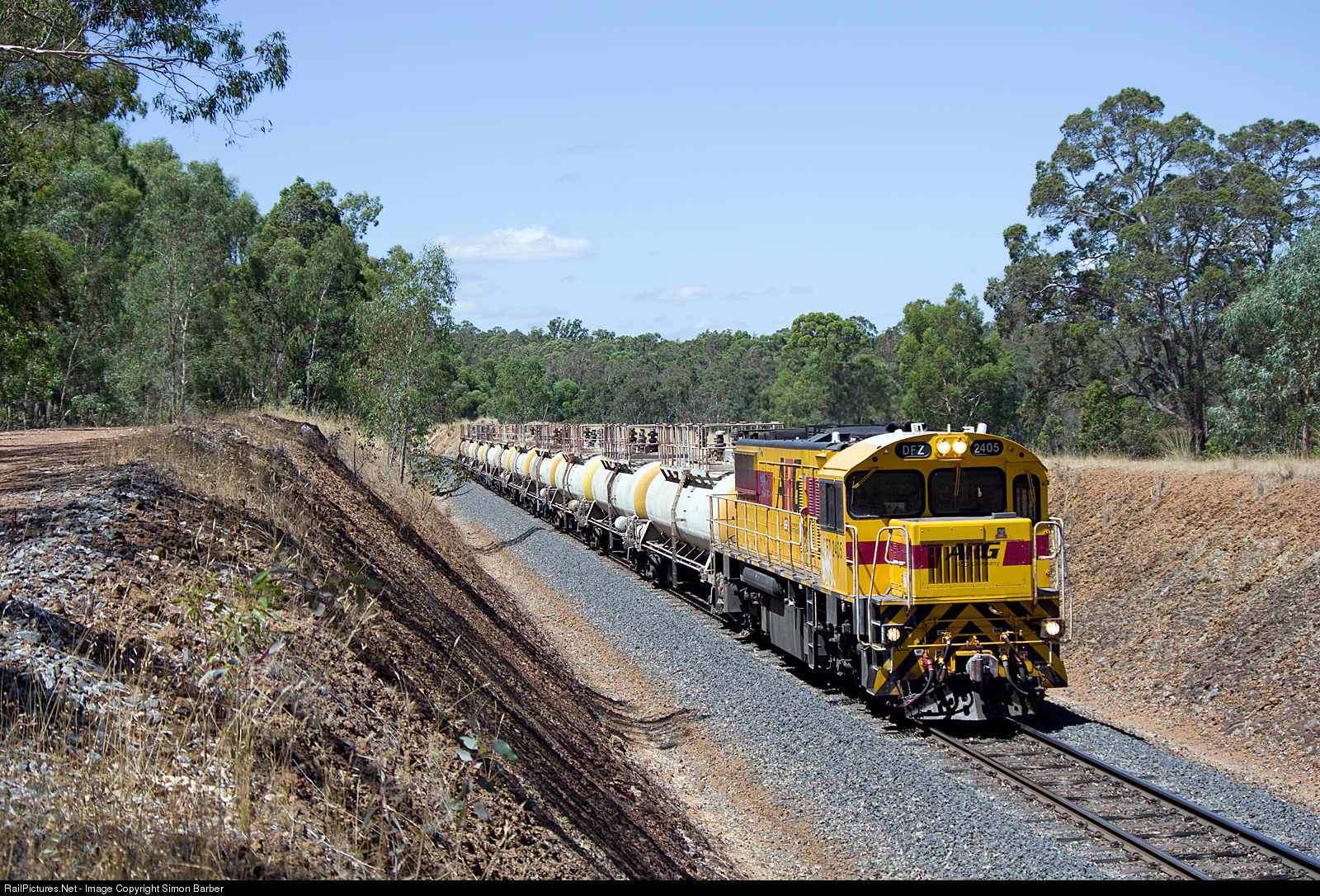DFZ2405 hauls an empty fleet of caustic tankers for loading at the Bunbury Inner Harbour.