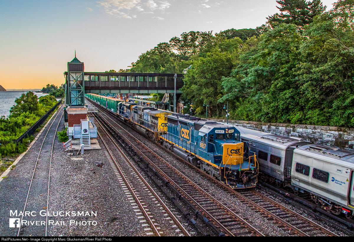 It was like we waited for you. CSX Q701-23 had a delayed arrival into New York City on the morning of Saturday, August 24, 2019, resulting in meeting the sunlight. As it passed the Riverdale Station in the Bronx, NY, MTA Metro North train 8705, the first northbound local of the day, comes to a stop. Leading unit CSXT SD40-2 8857 is one of the few EMDs that possesses with the necessary equipment to lead as the GE era begins to take hold on the Hudson Line.